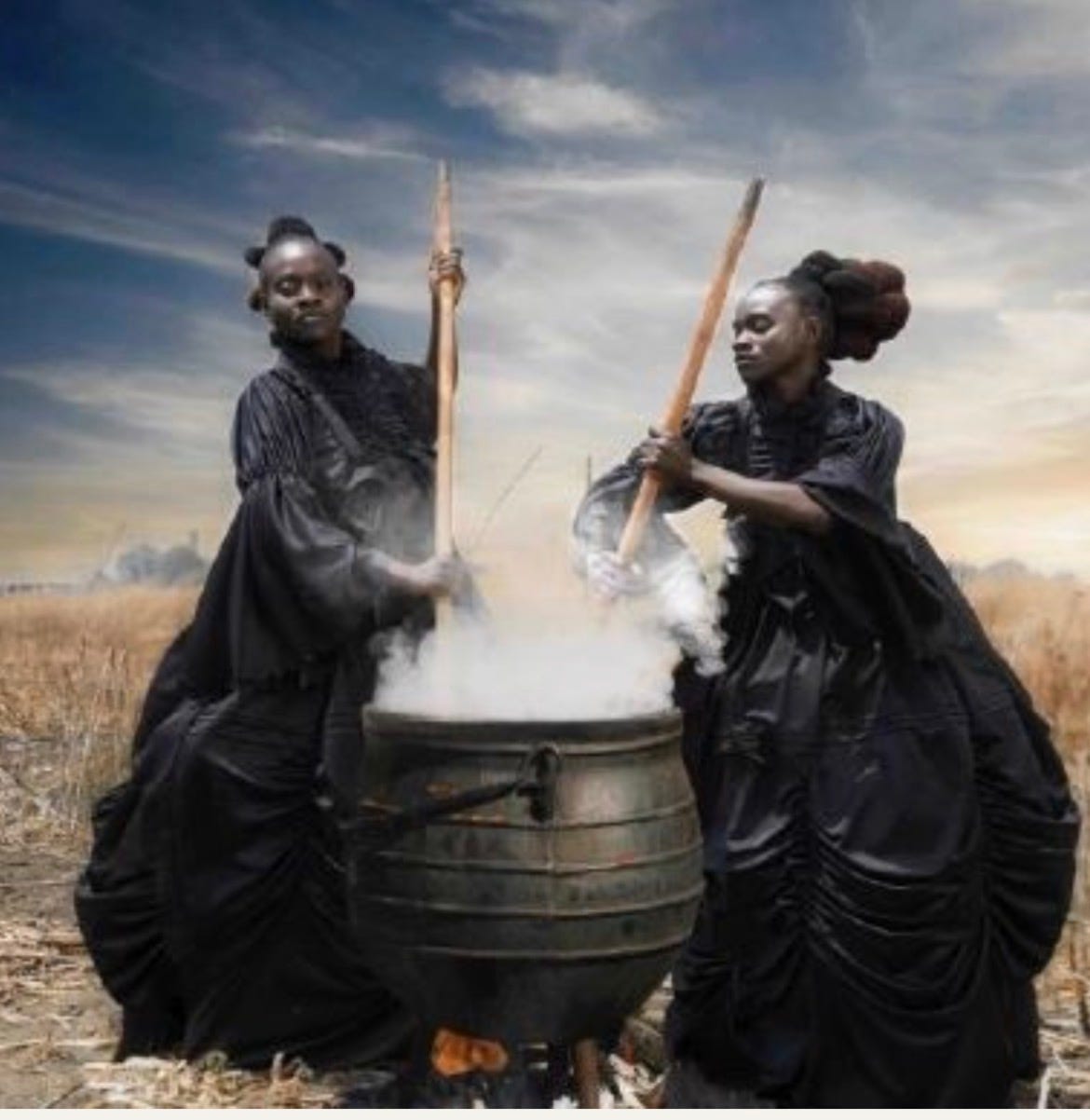 These gowns–the big Victorian skirts made with African fabric were more satirical than referential. It felt like a reclamation of space, as if these women, young and old, were phantoms come to life, oceans of massacred memories and rampant hope floating under their gowns.